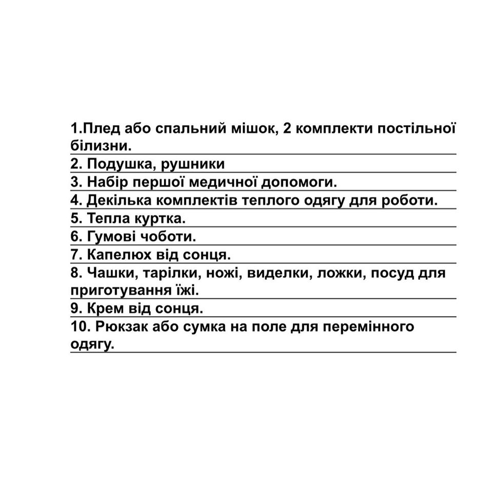 Список необхідних речей Karl‘s